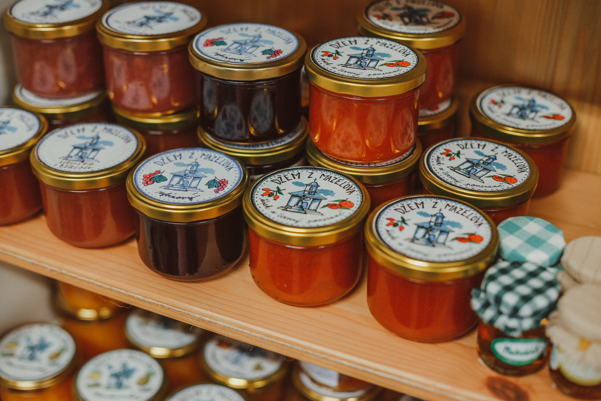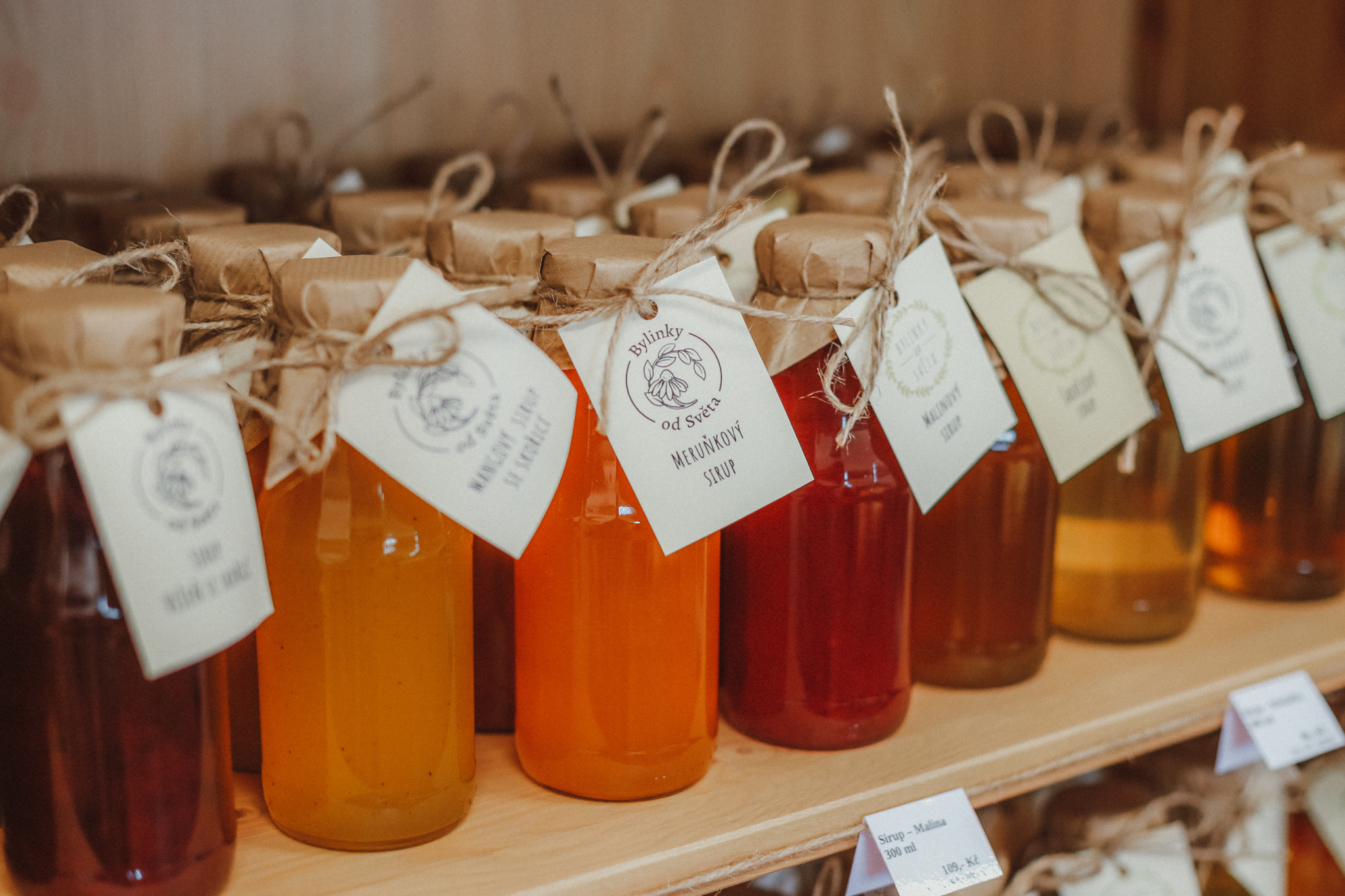Součástí provozu je také voňavý obchod s regionálními produkty, jenž uvítá kteréhokoliv návštěvníka. Kromě širokého sortimentu našich bylinných a ovocných sirupů můžete pro sebe nebo své blízké jako dárek vybrat bylinné čaje a tinktury, karamel a medy, marmelády, grilovací omáčky a dresinky. Koupit můžete i přírodní mýdla, bylinné masti, koupelové soli a keramiku od chráněné dílny Nazaret.
